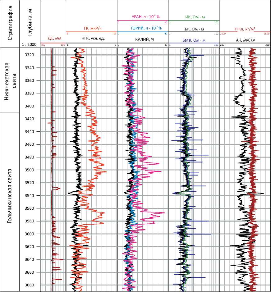 Рис. 4. Геофизическая характеристика разреза, вскрытого скв. Новоякимовская-1