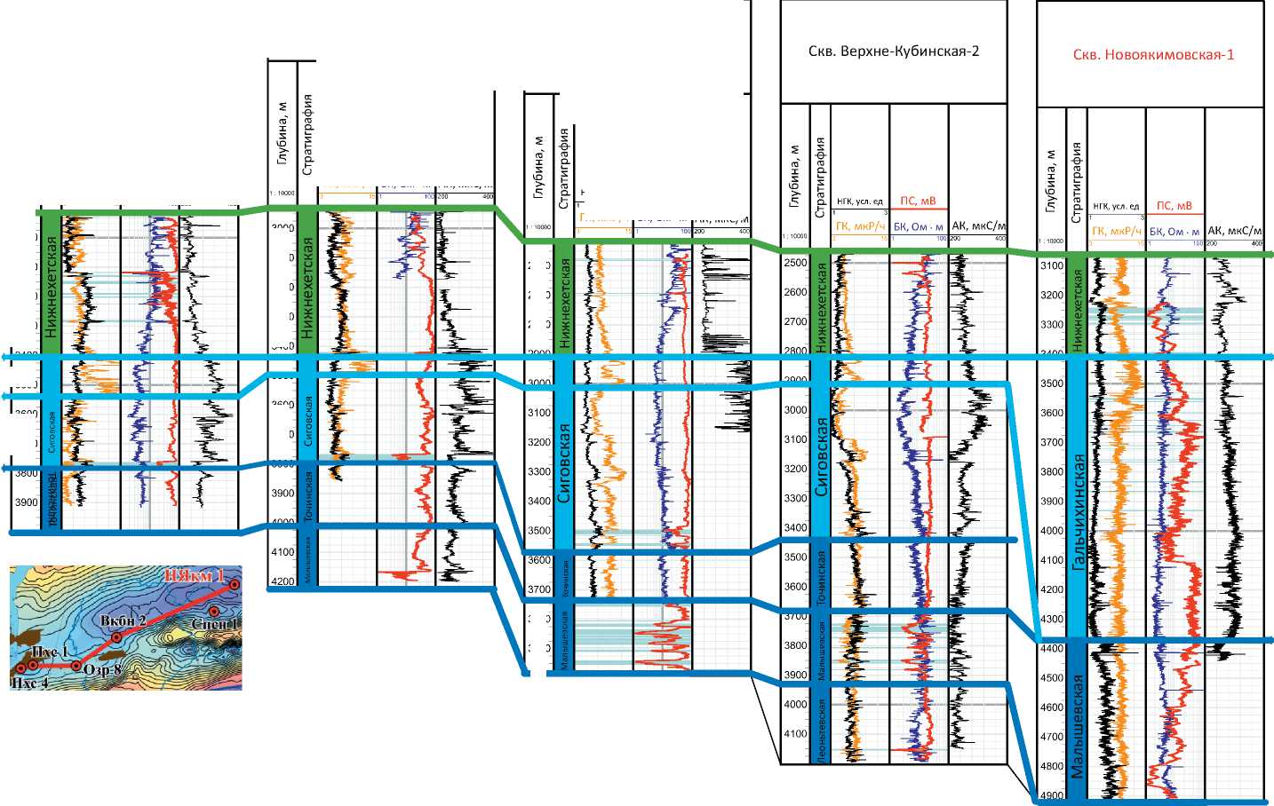 Проведенный комплекс исследований позволил осуществить литостратиграфическое расчленение разреза, уточнить особенности стратиграфии верхнемеловых, нижнемеловых, верхнеюрских и среднеюрских отложений (рис. 3).