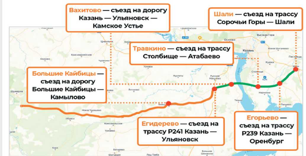 Рис. 2. Карта транспортных развязок на татарстанском участке М-12