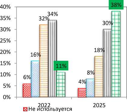 Изменение показателей мирового уровня внедрения ИИ в 2022 и 2025 годах в механизмы регулирования цепочек поставок товаров в целом представлено на рис. 1.