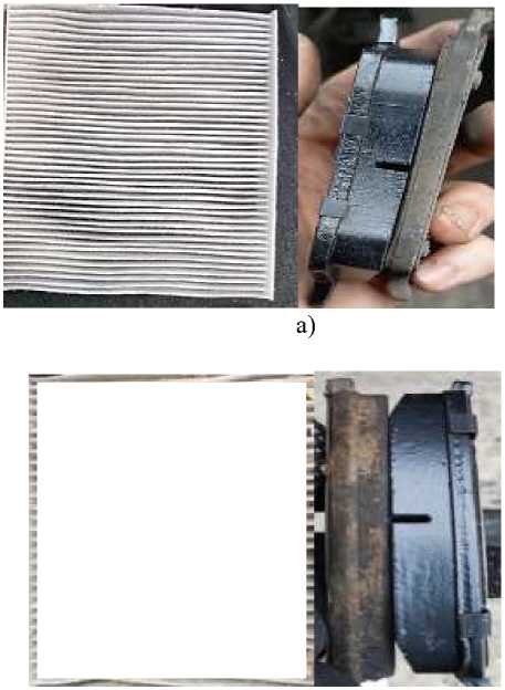 Рисунок 3 - Состояние салонного фильтра и тормозных колодок в зависимости от ФО при равных условиях эксплуатации: а) - ЮФО;