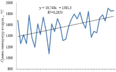 Рисунок 3. Динамика накопления сумм активных температур воздуха выше 10 °С в 1991-2025 годы.