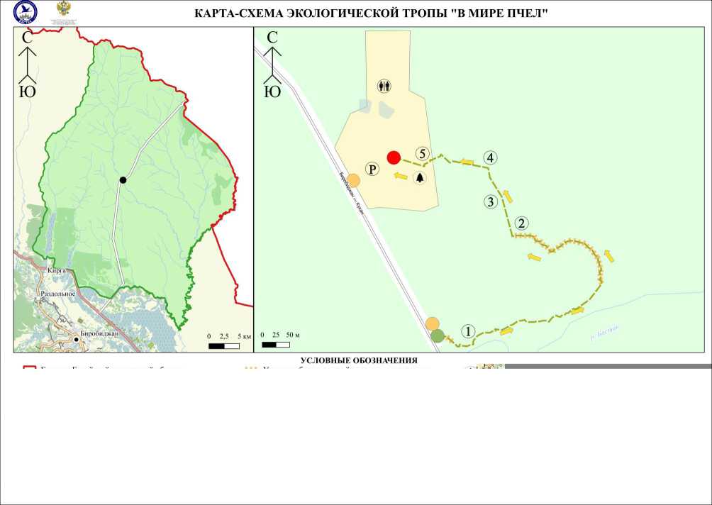 Согласно действующему Положению о государственном природном заповеднике «Бастак», утвержденному Приказом Минприроды России от 13.07.2017 г. № 409 (ред. от 14.07.2021 г.), одной из его ключевых задач является экологическое просвещение и развитие познавательного туризма [8]. С учетом всех особенностей, правил осуществления туристической деятельности на особо охраняемых природных территориях одной из наиболее эффективных форм организации экологического туризма является создание экологических троп, на которых проводятся экскурсии. В заповеднике «Бастак» разработаны три экологические тропы: «Учебная» (протяженностью 1,5 км) и «В мире пчёл» (протяженностью 1 км), которые расположены в 40 км севернее от г. Биробиджана, а также тропа «Тигриная» (протяженностью 2 км) – в 50 км севернее от г. Биробиджана. Все тропы располагаются на территории кластерного участка «Центральный» заповедника «Бастак» (рис. 2, 3).