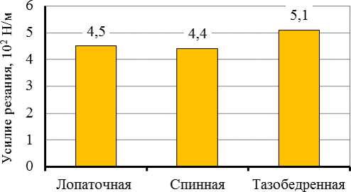 Рисунок 4 – Усилие резания мышечной ткани разных отрубов туши забайкальских коз