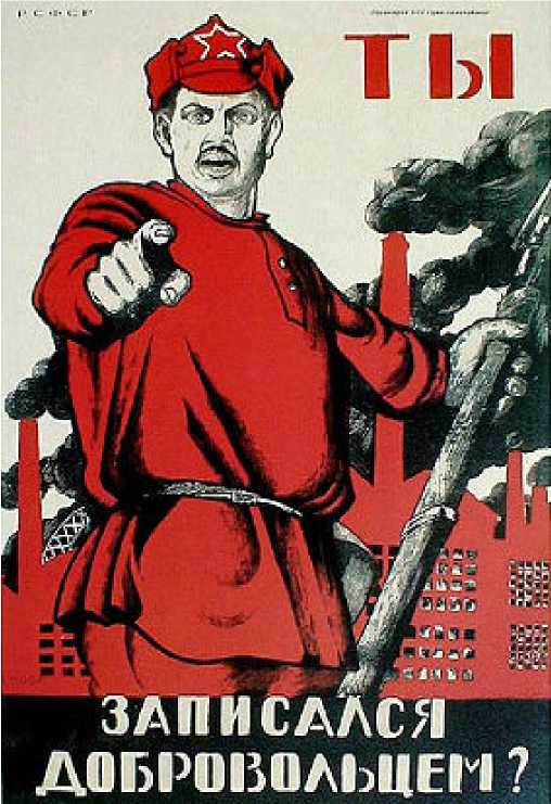 В советских плакатах Великой Отечественной войны уже был опыт обращения к этим образам. Иногда образ героя перемещался с плакатов времен Гражданской войны в реалии новой войны – как повторил свой самый знаменитый плакат «Ты записался добровольцем?» Дмитрий Моор в 1941 г. (рис. 1).