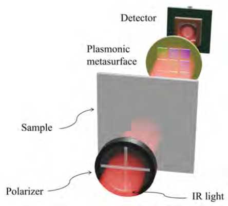 Рис. 1. Схема предлагаемого миниатюрного спектрометра на основе плазмонных метаповерхностей