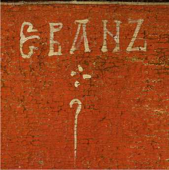 Фрагменты надписей: а — икона «Спас на престоле с избранными святыми». Надпись: ОАГИ Ѡ СЪ слева от изображения Власия на нижем поле; б — икона «Преподобный Иоанн Лествичник, великомученик Георгий и священномученик Власий». Надпись: ОАГИѠСЪ справа от изображения Иоанна Лествичника на фоне; в — икона «Спас на престоле с избранными святыми». Надпись: ВЛАСИI справа от изображения Власия на нижем поле; г — икона «Преподобный Иоанн Лествичник, великомученик Георгий и священномученик Власий». Надпись: ЕВАНЪ слева от изображения Иоанна Лествичника на фоне