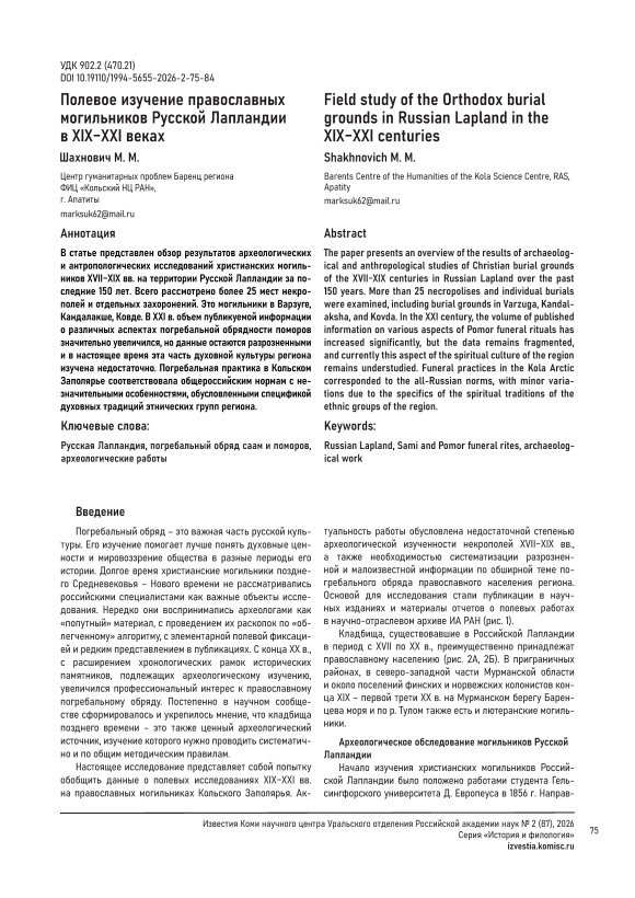 IDR: 149150730 | УДК: 902.2 (470.21) | DOI: 10.19110/1994-5655-2026-2-75-84