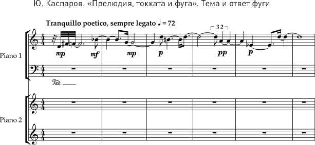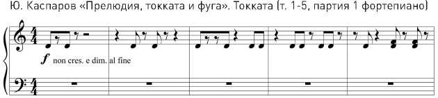 Ю. Каспаров «Прелюдия, токката и фуга». Токката (т. 5-10, партия 2 фортепиано)