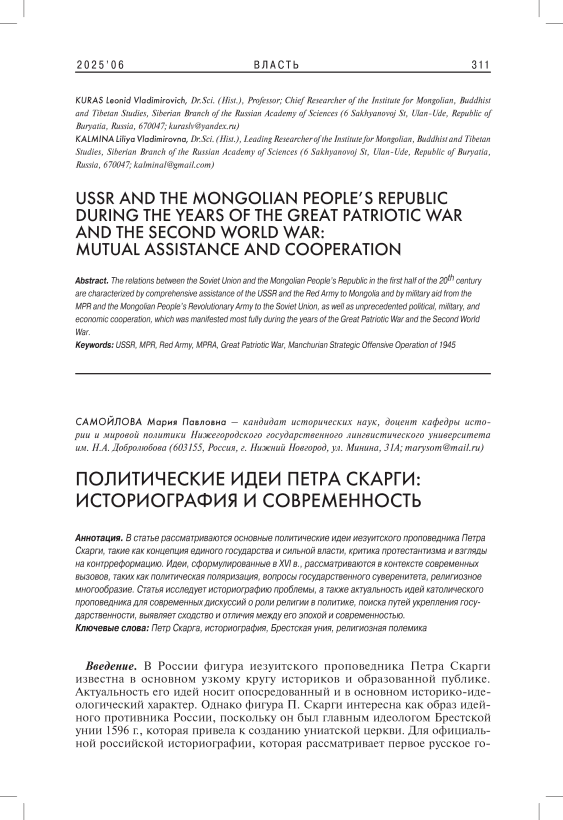 Статья в выпуске: 6 т.33, 2025 года.