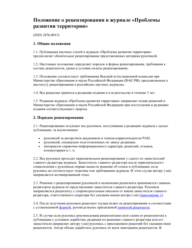 Положение о рецензировании - Проблемы развития территории