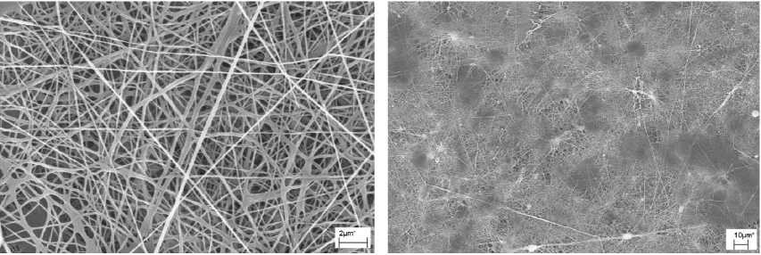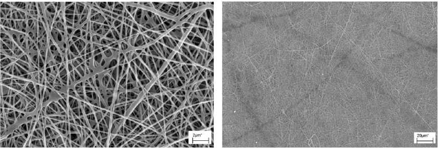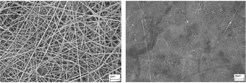 Изображения структуры нановолокнистых материалов, полученные методом сканирующей электронной микроскопии, представлены на рисунке 2.