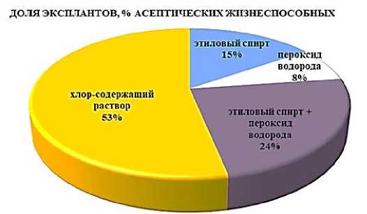 В связи с этим разработка индивидуальной методики стерилизации, включающей подбор препаратов, их концентраций и времени обработки с целью достижения максимальной стерильности культуры при минимальном угнетении эксплантов, остается актуальной.