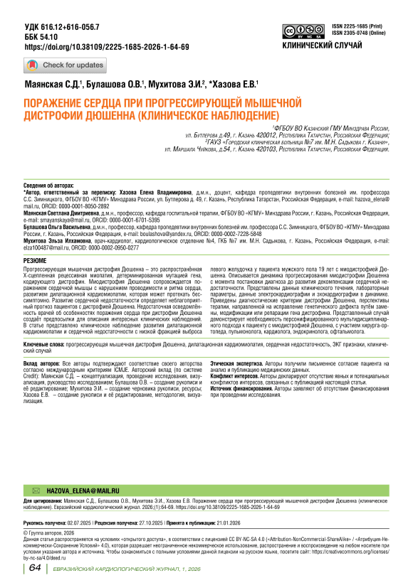 68 ЕВРАЗИЙСКИЙ КАРДИОЛОГИЧЕСКИЙ ЖУРНАЛ, 1, 2026