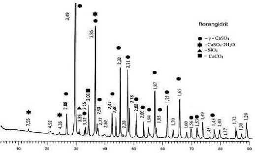 Рентгенофазовый анализ фторангидрита показал преобладание в нем растворимого сульфата кальция γ -CaSO 4 (рис. 1).