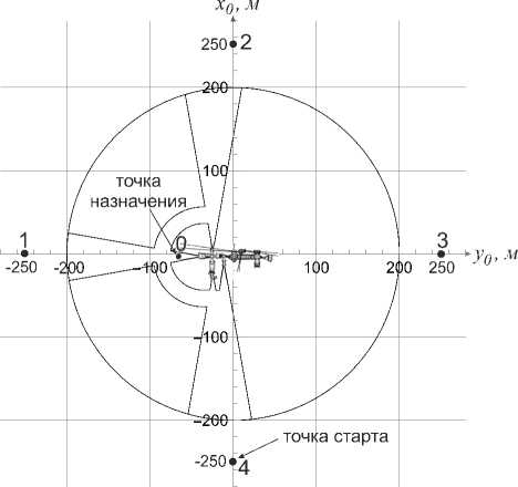Поставим перед СИ следующую задачу: облететь МКС, начав движение из положения 4, и закончив зависанием возле узла стыковки модуля Звезда, то есть в положении 0 (рисунок 2).