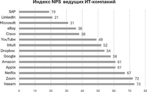продаж [14]. При этом не учитываются такие важные показатели, как лояльность клиентов и их удовлетворенность, что особенно важно на российском ИТ-рынке из-за высокой конкуренции. Для понимания насколько клиенты довольны работой компании, ее продуктами и сервисами, предлагается измерять индексы лояльности клиентов NPS20 и удовлетворенности заказчиков CSI21 [15]. Измерение рекомендуется проводить не реже одного раза в год.