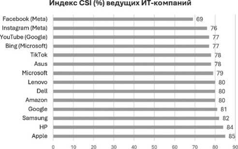 Рисунок 2. Индексы лояльности NPS и удовлетворенности CSI ведущих ИТ-компаний