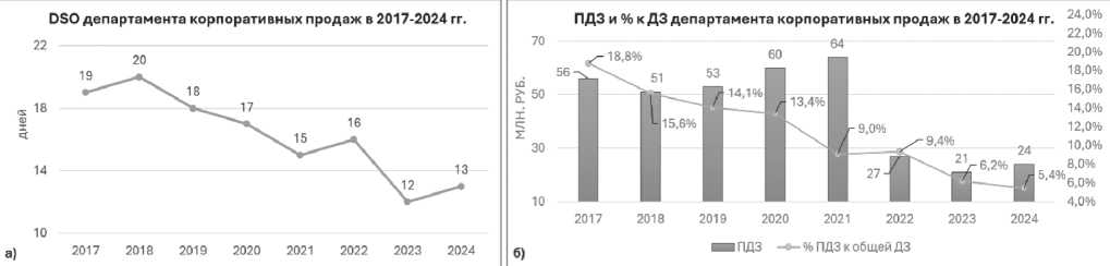 Рисунок 3. Пример результата мониторинга DSO и ПДЗ департамента корпоративных продаж в 2017
