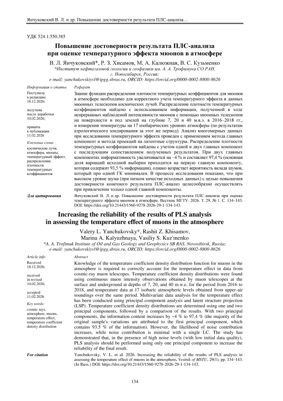 Янчуковский В. Л. и др. Повышение достоверности результата ПЛС-анализа при оценке температурного эффекта мюонов в атмосфере. Вестник МГТУ. 2026. Т. 29, № 1. С. 134–143. DOI:
