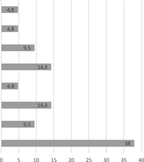 Опрос экспертов, проведенный авторами, показал, что сотрудники вузов при разработке своих изобретений используют общенаучные и инженерные методы исследовательской деятельности (рис. 3). В арсенале большинства из них отсутствует специальный инструментарий для сложных конструктивных решений, который был разработан в теории и методологии решения изобретательских задач [4; 25].