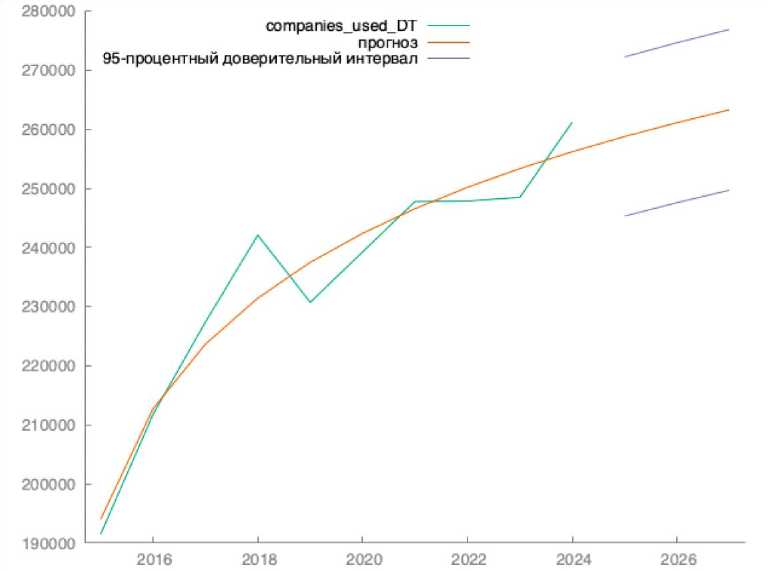 Модели регрессии временного ряда трендов внедрения цифровых технологий на уровне экономики РФ