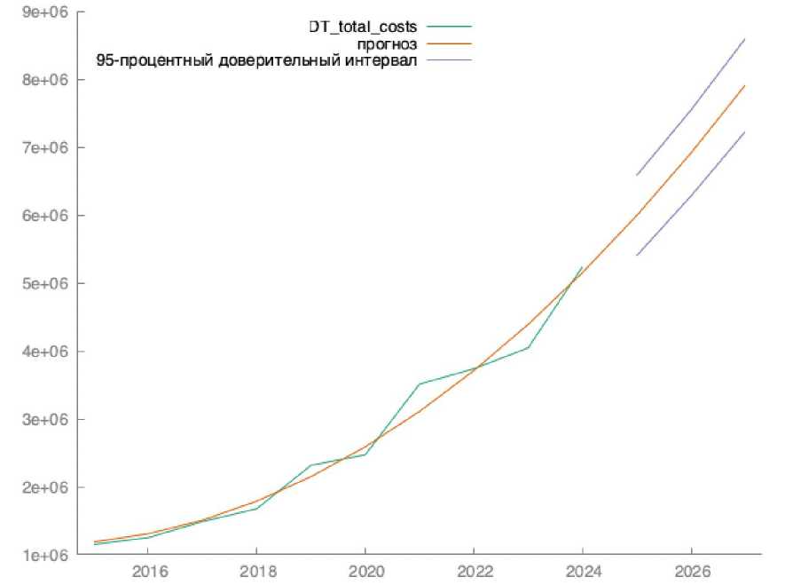 Квадратическая модель общих затрат на внедрение и использование цифровых технологий, млн руб. |