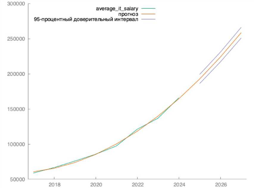 Квадратическая модель среднемесячной заработной платы специалистов в области информационных технологий и связи, руб. |