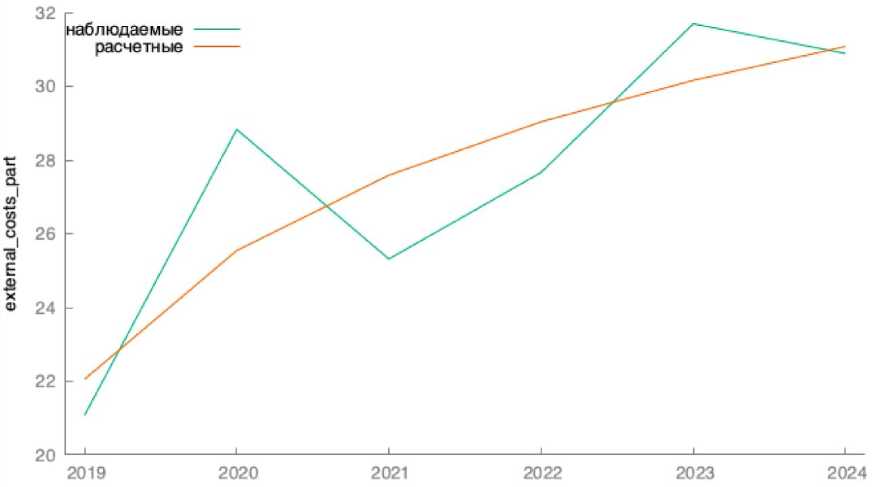 Для выявления трендов и сопоставления их силы были построены модели линейной, квадратичной и логарифмической регрессии временного ряда для комплекса показателей, характеризующих масштабы и эффективность внедрения цифровых процессов. Для обеспечения репрезентативности и глубины анализа влияния инвестиций в цифровые технологии моделирование трендов на уровне экономики в целом было расширено исследованием на уровне отдельных предприятий.