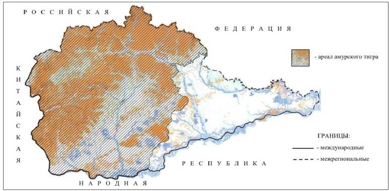 Рис. Распространение амурских тигров в Еврейской автономной области по состоянию на 2025 год