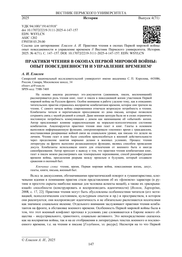 IDR: 147252781 | УДК: 94(100)"1914/1918" | DOI: 10.17072/2219-3111-2025-4-147-157