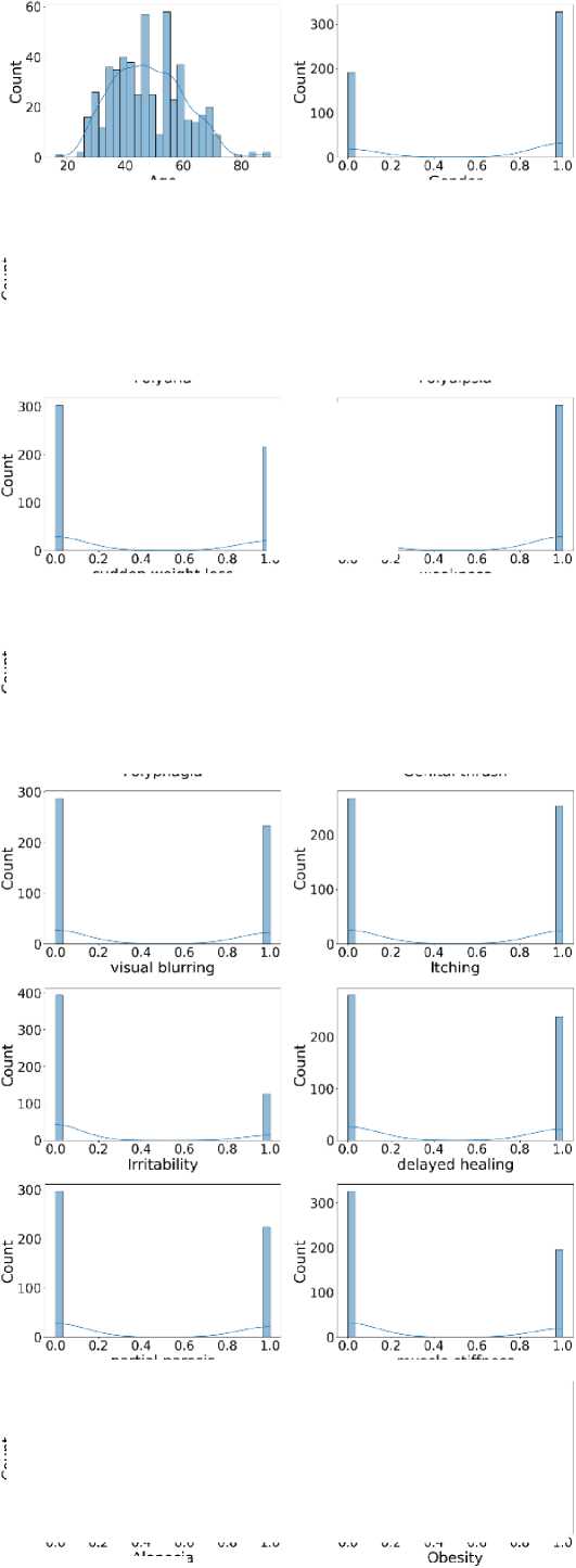 In [12], the authors have implemented RF, Naïve Bayes (NB), Multilayer Perceptron (MLP), and SVM to forecast diabetes using a health dataset. The MLP model achieved 82% accuracy, demonstrating that combining multiple algorithms enhances early detection and prediction of diabetes. This approach highlights the capabilities of ML in the healthcare sector. In [13], the authors explored the prediction of diabetes using ML techniques. They utilized the PIMA Indian Diabetes Database, which contains health-related attributes such as age, BMI, and glucose levels. The algorithms tested include DT, SVM, and KNN. Among these, SVM achieved the highest accuracy at 78.6%, followed by DT at 76.4%. This study demonstrates the effectiveness of ML models in diabetes prediction, with SVM emerging as the most accurate in their tests. In [14], the authors explored diabetes prediction using the Pima Indian Diabetes dataset from UC Irvine. They evaluated various ML techniques, including KNN, DT, and Random Forests. The RF technique had the highest efficacy, achieving an accuracy of 77.6%. This study demonstrates that ML, particularly random forests, can accurately predict diabetes. The study in [15] used a dataset of 1,000 patients from an ophthalmology clinic, including age, gender, BMI, blood pressure, cholesterol levels, and diabetes duration. It applied ML algorithms such as LR, DT, RF, SVM, KNN, and NN. The RF and NN achieved good accuracy. This research highlights the effectiveness of ML models, particularly RF, in predicting diabetic retinopathy based on patient risk factors.