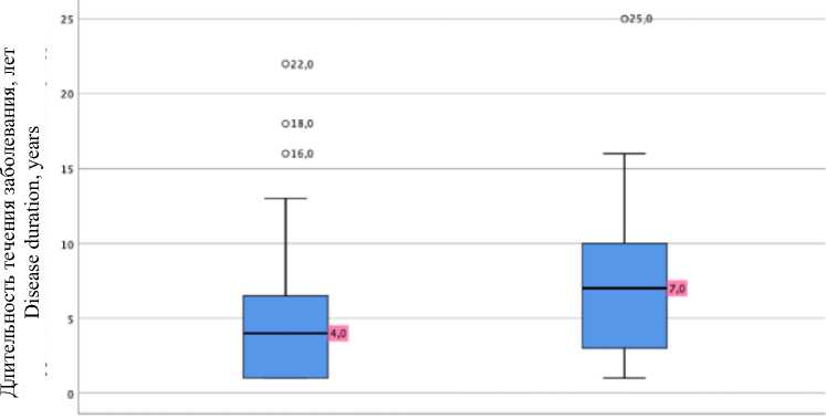Длительность течения заболевания 7 лет и более Disease duration ≥ 7 years |