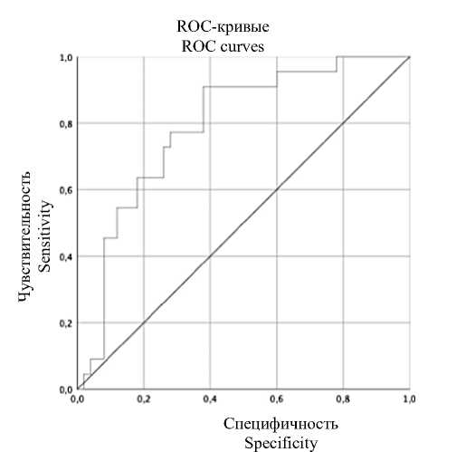 Рис. 3. ROC-кривая, характеризующая зависимость вероятности рецидива лейомиомы от значений прогностической функции