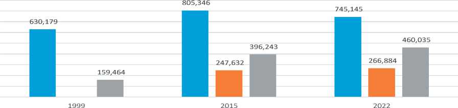 Представленная динамика пополнения основных фондов музеев Республики Татарстан с 1999 по 2022 гг. основана на данных отчетов по форме 8-НК. Она отличается в зависимости от организационно-правовой формы музеев. Реперными точками служат данные по 1999, 2015 и 2022 гг. Были изучены данные по 73 государственным музеям, 110 муниципальным и 6 музеям-заповедникам.
