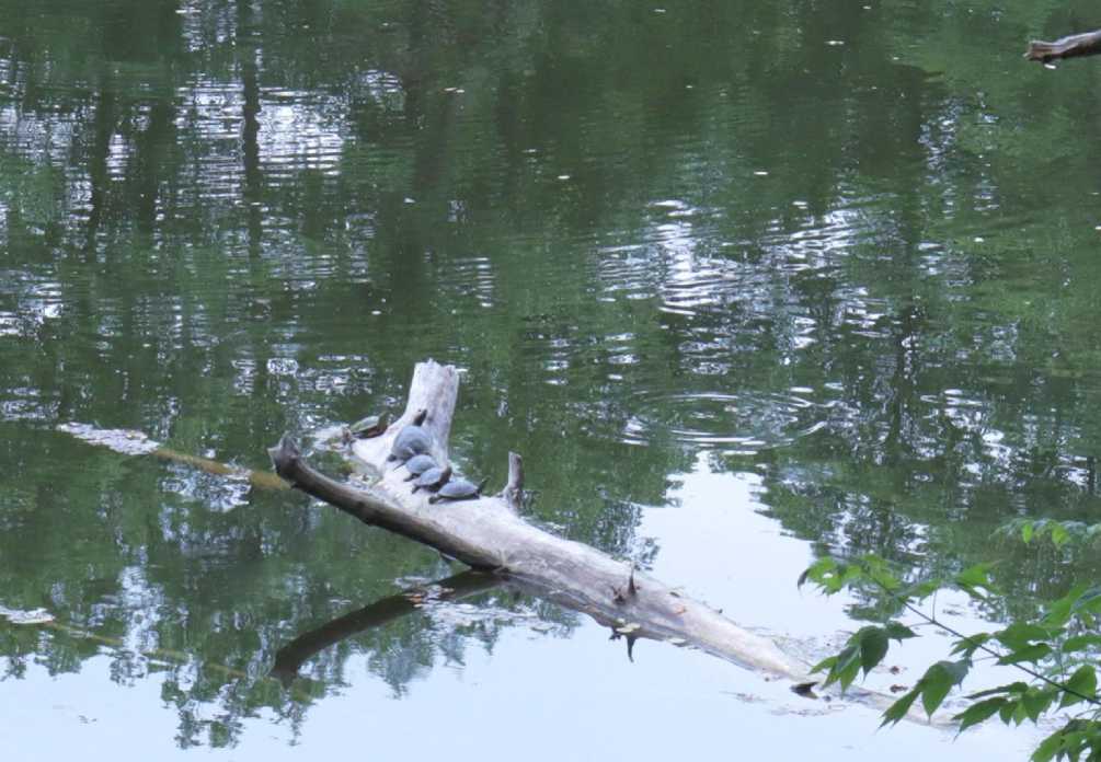 Рис. 2. Черепахи на коряге (оз. Потапово, 16 июня 2023 г., фото А.А. Клёниной).