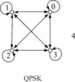 1. Передача символа приводит к изменению фазы, то есть переход от сигнала к сигналу обязательно ведет к изменению фазы. В частности, это означает, что переход от фазы «0» к фазе «0» невозможен.