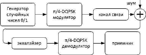 Так как в работе исследуется передача в условиях межсимвольной интерференции, то кроме однолучевого канала был имитирован двулучевой канал. Для простоты был использован канал с импульсной характеристикой g = [ 1 0,5 ] . Так как для такого канала можно использовать не только алгоритмы декодирования, анализирующие непосредственно сигнал после канала связи, но и использовать схему декодирования «эквалайзер и простой декодер» (декодер, в котором выносится решение на основании сравнения с эталонными сигналами).