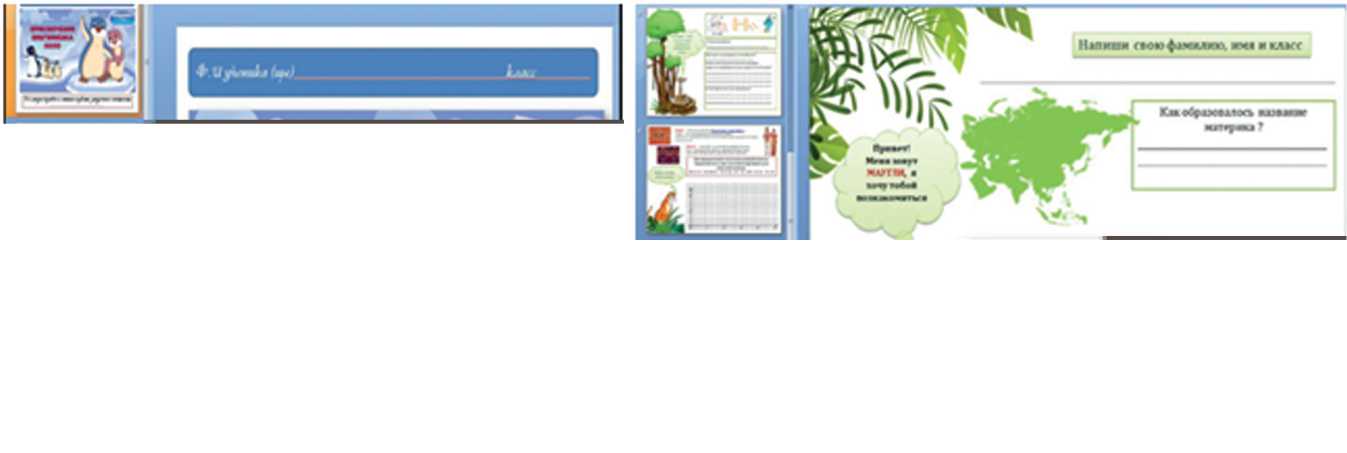 Рис. 2. Скрин-шоты презентаций с заданиями по Антарктиде и Евразии