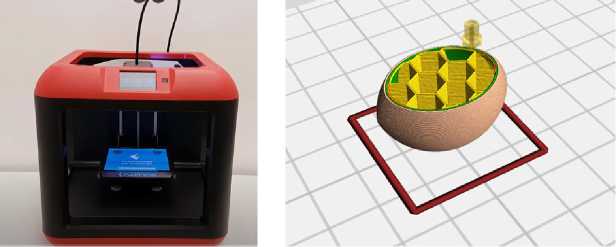 Разработали методику расчета параметров макетов ягод (рис. 1), предусматривающую изменение массы и, как следствие, плотности макетов посредством различной степени заполнения пластиком их внутренней полости. Создание 3D-модели ягод выполняли в программном обеспечении FlashPrint 5 , позволяющем настраивать такие параметры модели как толщина слоя, степень заполнения внутреннего пространства и др.