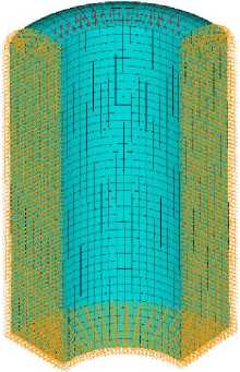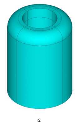 Построенной модели присваиваются механические свойства материала. Материалом имплантата сплав NiTi со следующими механическими упругими константами: модуль продольной упругости E =115 ГПа коэффициент Пуассона ν=0,32. В силу симметрии 3-D модели и прикладываемых нагрузок для численного анализа, может быть использована конечно-элементная модель четвертой части имплантата, на которой генерируется сетка КЭ (рис. 1, б - модель четвертой части имплантата).
