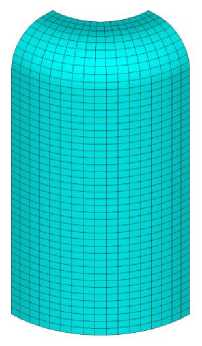 Начальным этапом расчета (рre-processor) является создание модели, задание свойств материала и граничных условий, генерация сетки КЭ [ Адеянов И.Е., c. 198 ]. Геометрическая модель имплантата представлена на рис. 1. Она представляет собой цилиндрический реконструктивный имплантат с размерами: диаметр 5,95 мм, высота 8,1 мм, диаметр центрального направляющего отверстия 3,2 мм.