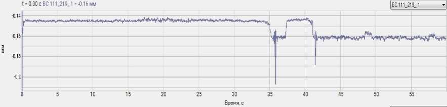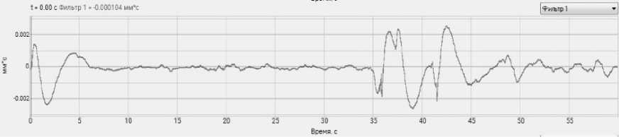 Рисунок 3. График зависимости виброперемещения от времени (t)