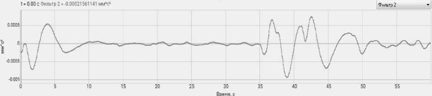 Рис 5. График зависимости виброускорения от времени (t)