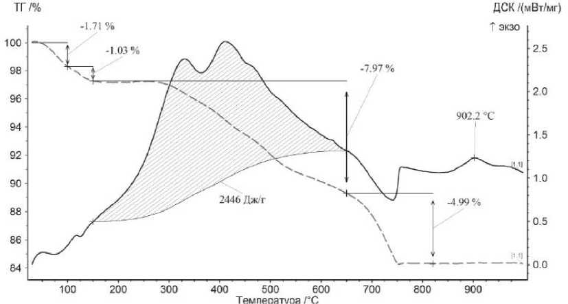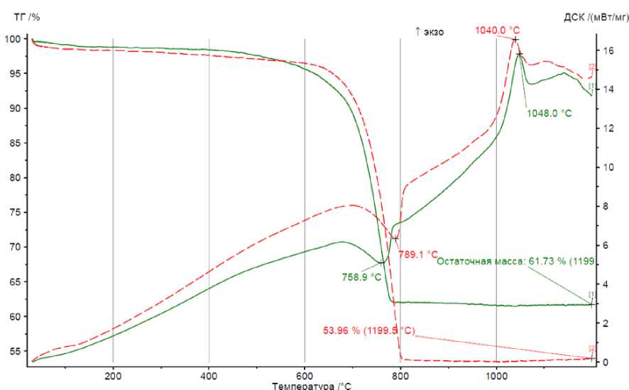 Рис. 2. ДСК/ТГ-кривые образца каолинитовой глины (Середин и др., 2021)