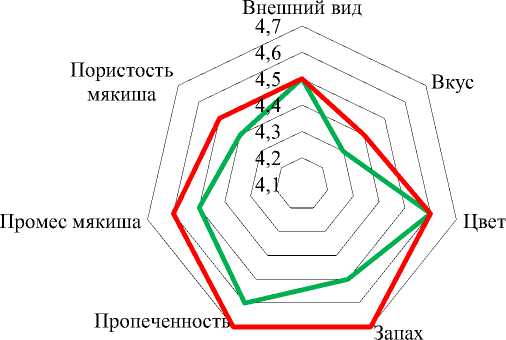 Проведенный анализ органолептических показателей экспериментальных образцов хлеба с использованием высокобелкового сырья взамен различного количества муки пшеничной, позволил определить оптимальную дозировку, которая составила для муки гороховой 21,8 %, для казеина – 4,7, для сывороточного белка – 4,7 %, для базилика сушеного – 1,25 % от общей массы сырья.