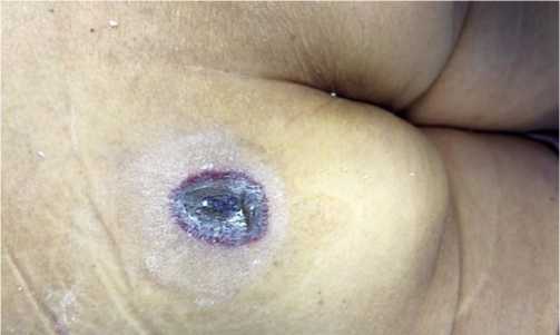 Рис. 1. Хроническая рана черного цвета после элетротравмы (3 x 2 см).