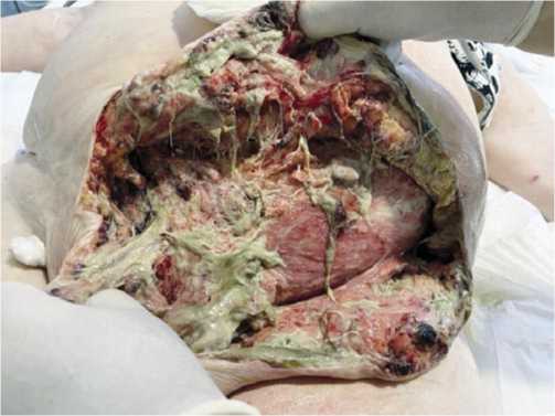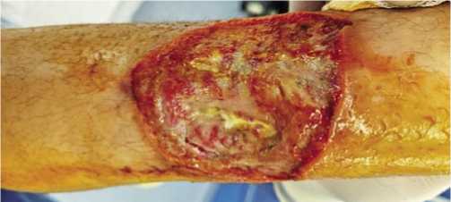 Рис. 2. Хроническая рана желтого цвета после автотравмы.