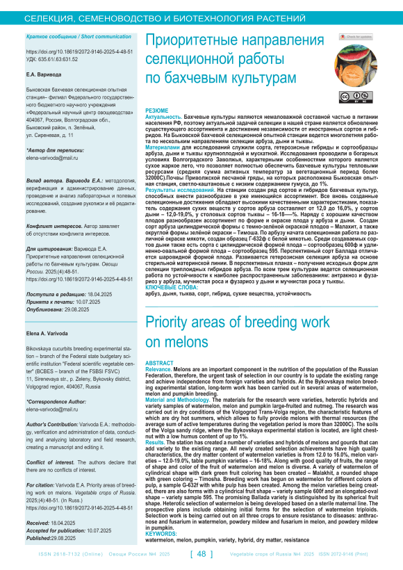 IDR: 140312152 | УДК: 635.61/.63:631.52 | DOI: 10.18619/2072-9146-2025-4-48-51