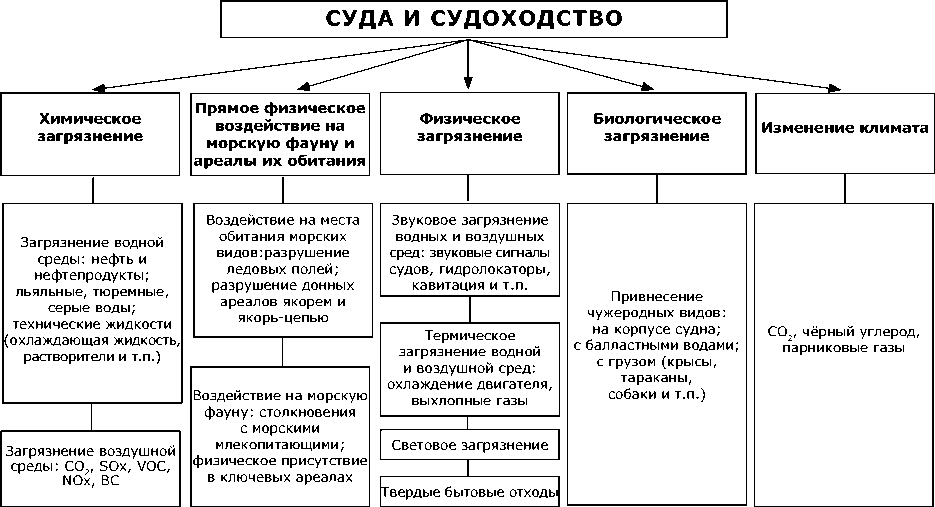 Рисунок 1. Негативное воздействие судов и судоходства на морские экосистемы [40]